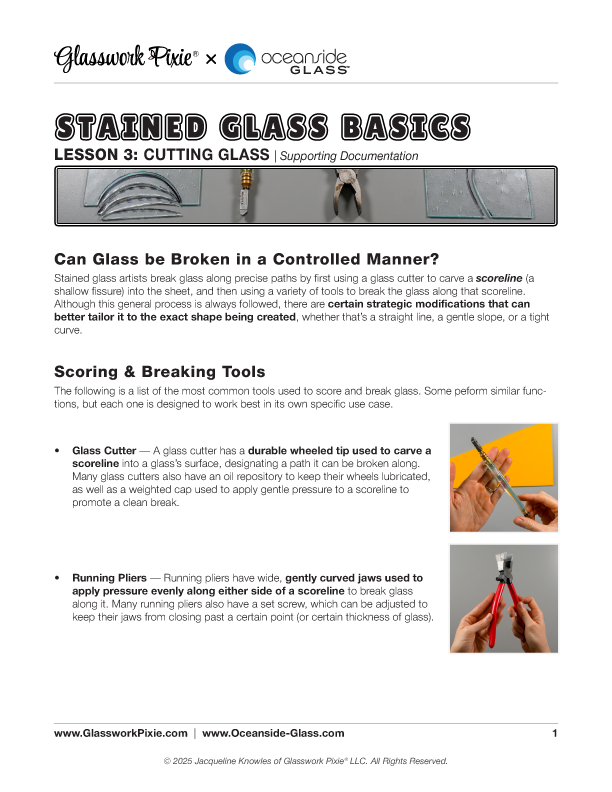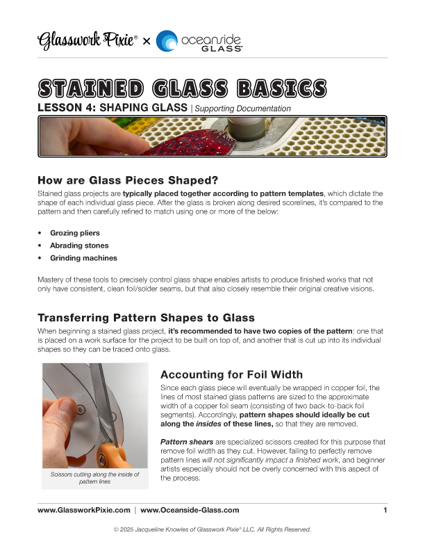 Glasswork Pixie® partners with Oceanside Glass™ in this instructional series to teach the foundational skills needed to create stained glass pieces.